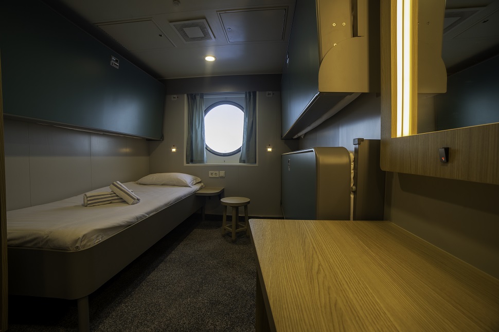 Le cabine sono 441, interne ed esterne, e si suddivisono in varie tipologie da quadruple a Suite o strutturate per passeggeri con disabilità e infine per passeggeri che desiderano viaggiare senza farsi mancare la compagnia dei loro animali domestici. Il design delle cabine è moderno e tutte sono munite di un sistema di apertura con serratura elettronica che ne permette l'apertura con carte magnetiche.