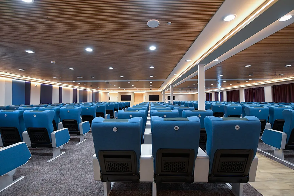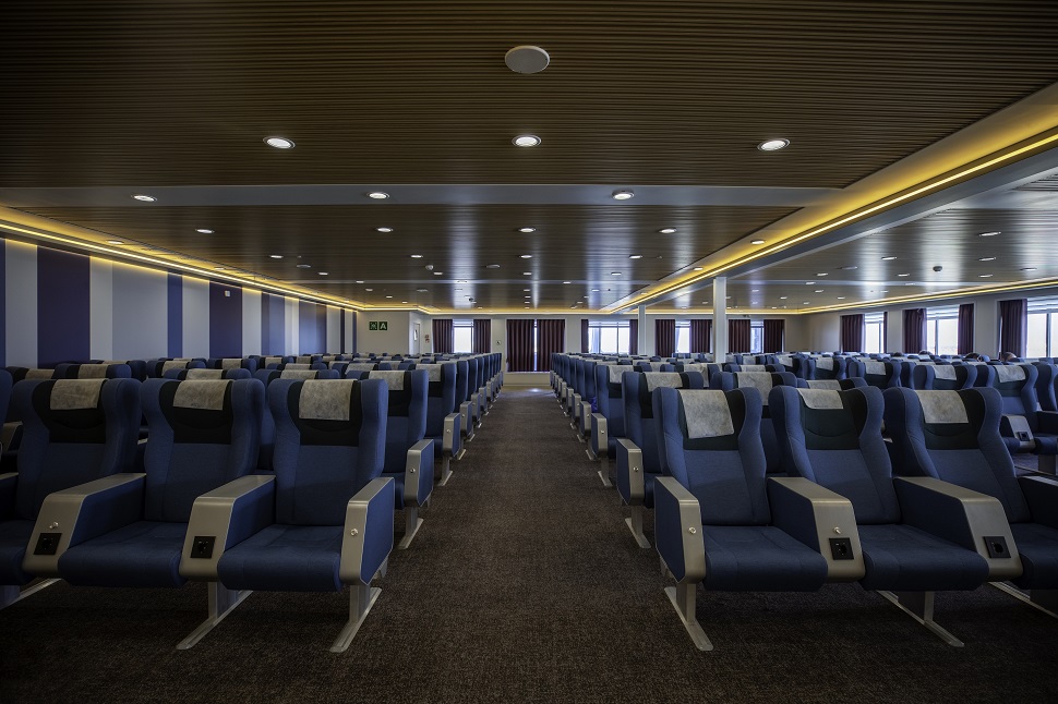 La sala poltrone ospita complessivamente 403 poltrone, tutte reclinabili ed accessoriate da prese di corrente e usb. Ampia l'area dedicata al deposito bagagli.